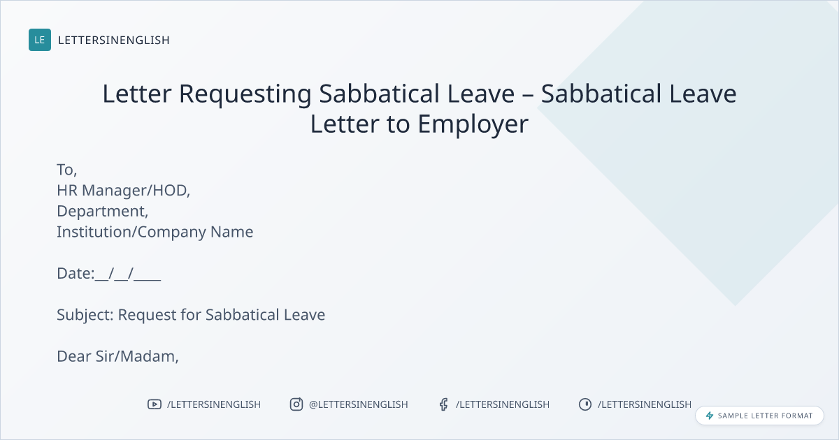 Letter Requesting Sabbatical Leave – Sabbatical Leave Letter to Employer