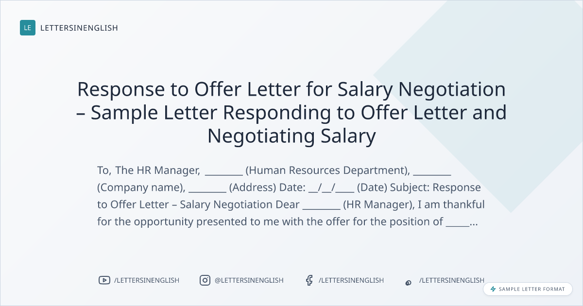 Response to Offer Letter for Salary Negotiation – Sample Letter Responding to Offer Letter and Negotiating Salary