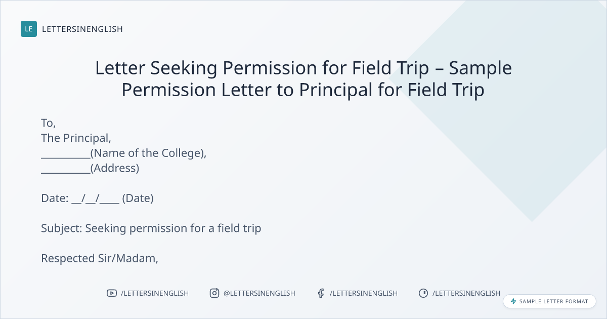 Sample Permission Letter to Principal for Field Trip