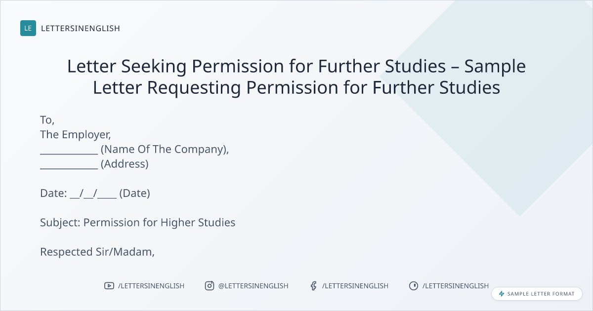 Letter Seeking Permission for Further Studies – Sample Letter Requesting Permission for Further Studies