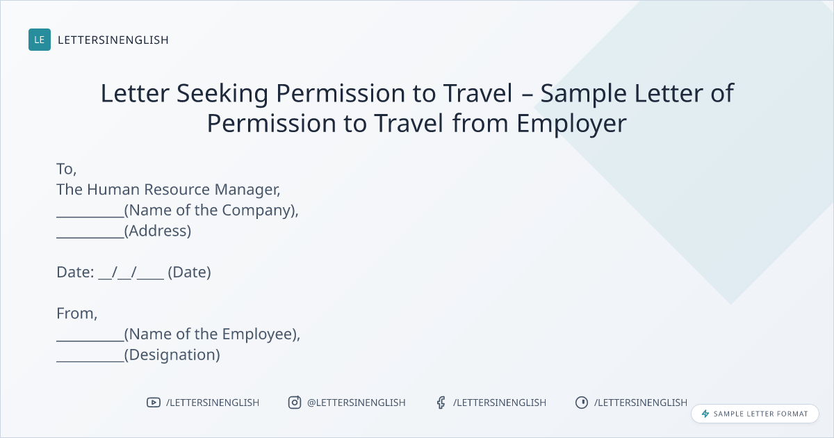 Letter Seeking Permission to Travel – Sample Letter of Permission to Travel from Employer