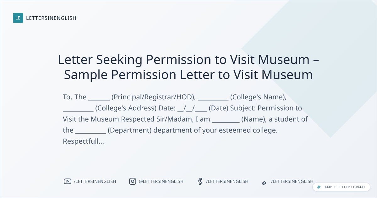 Letter Seeking Permission to Visit Museum – Sample Permission Letter to Visit Museum