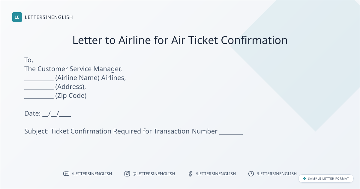 Letter to Airline for Air Ticket Confirmation
