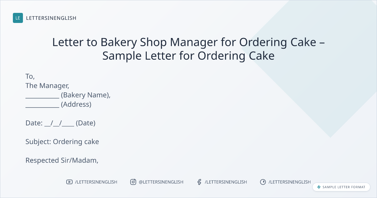 Letter to Bakery Shop Manager for Ordering Cake – Sample Letter for Ordering Cake