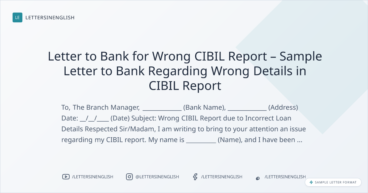 Letter to Bank for Wrong CIBIL Report – Sample Letter to Bank Regarding Wrong Details in CIBIL Report