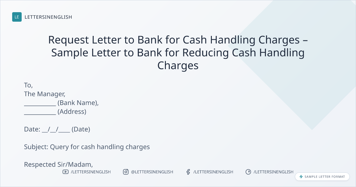 Request Letter to Bank for Cash Handling Charges – Sample Letter to Bank for Reducing Cash Handling Charges