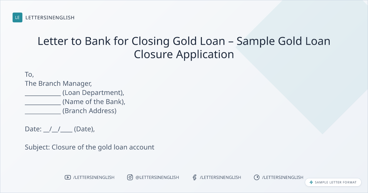 Letter to Bank for Closing Gold Loan – Sample Gold Loan Closure Application