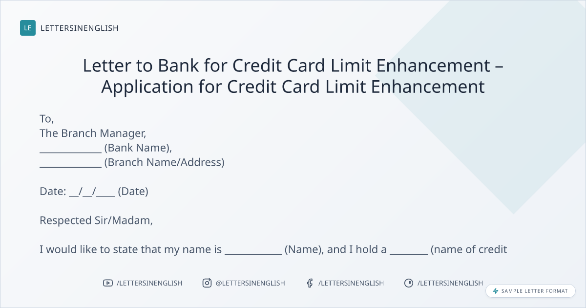 Letter to Bank for Credit Card Limit Enhancement – Application for Credit Card Limit Enhancement