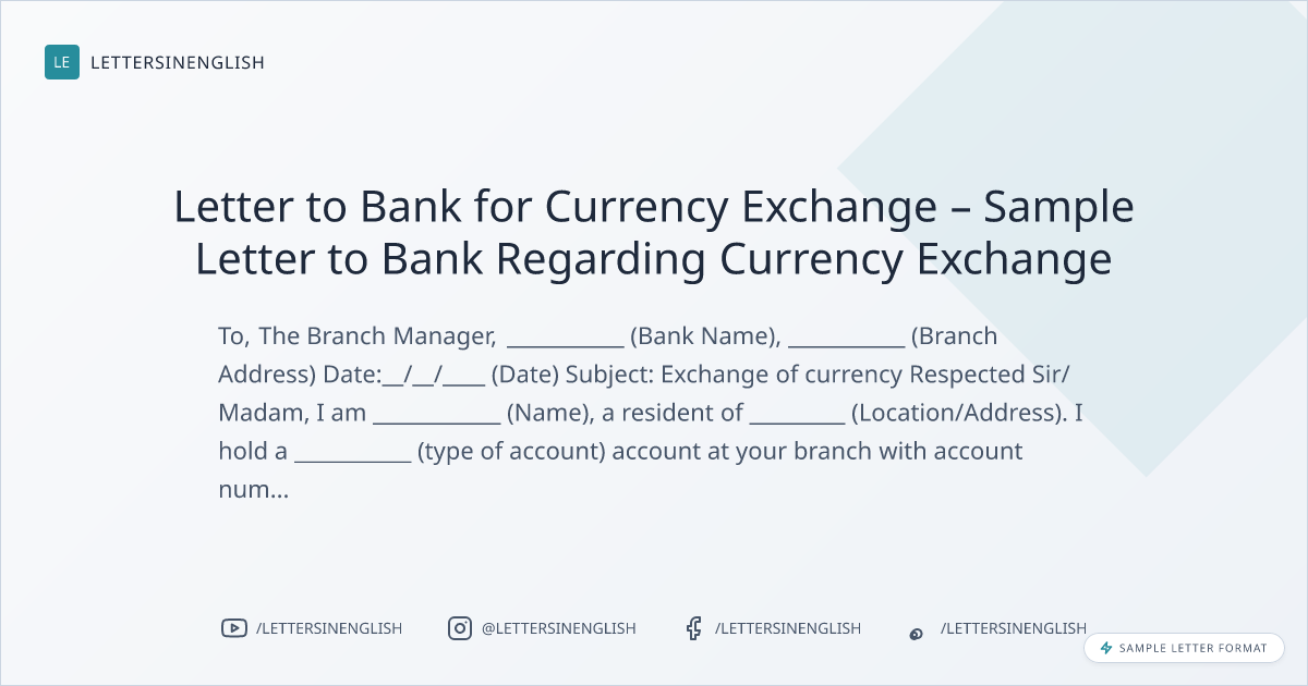 Letter to Bank for Currency Exchange – Sample Letter to Bank Regarding Currency Exchange