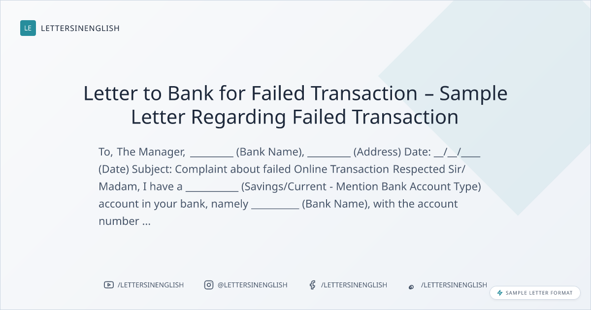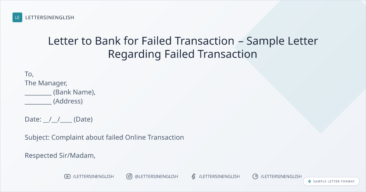 Letter to Bank for Failed Transaction – Sample Letter Regarding Failed Transaction