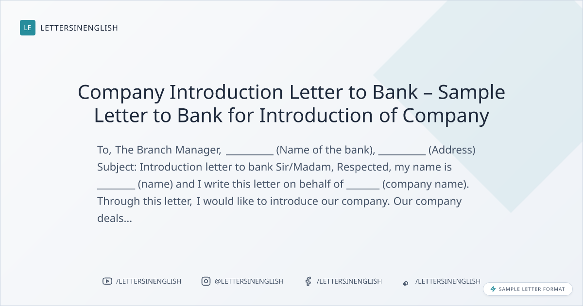 Company Introduction Letter to Bank – Sample Letter to Bank for Introduction of Company