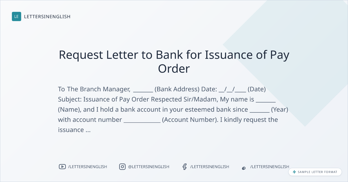 Sample Letter to Bank for Issuance of Pay Order