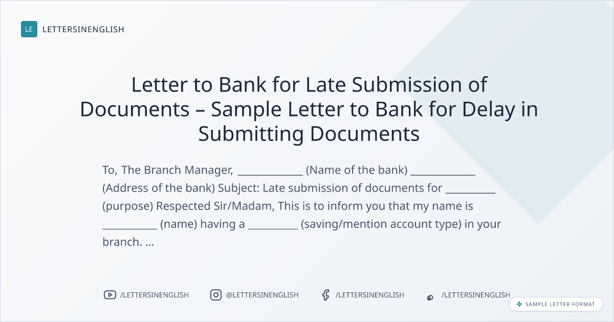 Letter to Bank for Late Submission of Documents – Sample Letter to Bank for Delay in Submitting Documents