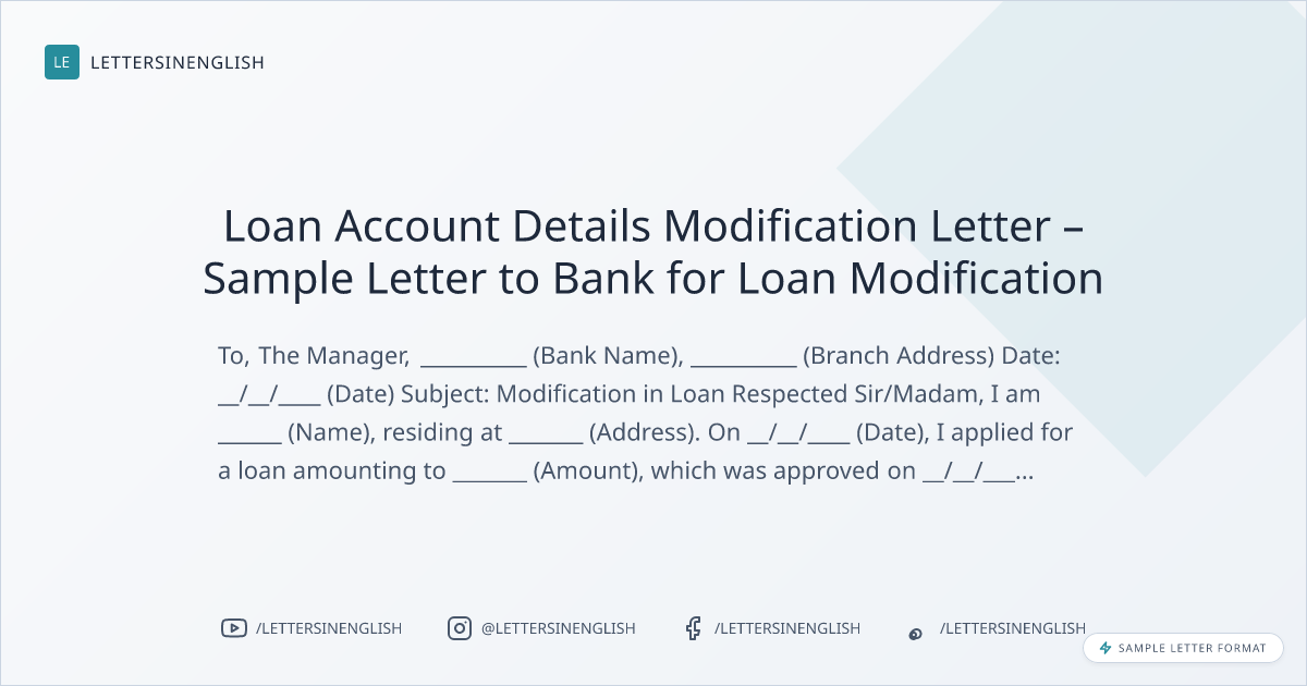 Loan Account Details Modification Letter – Sample Letter to Bank for Loan Modification