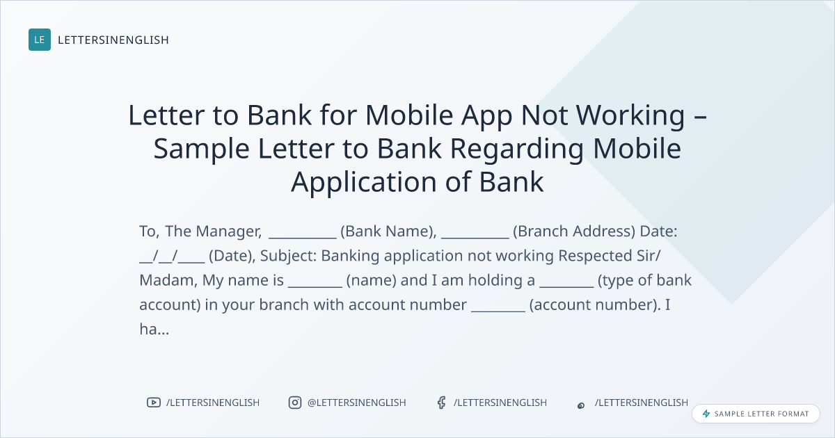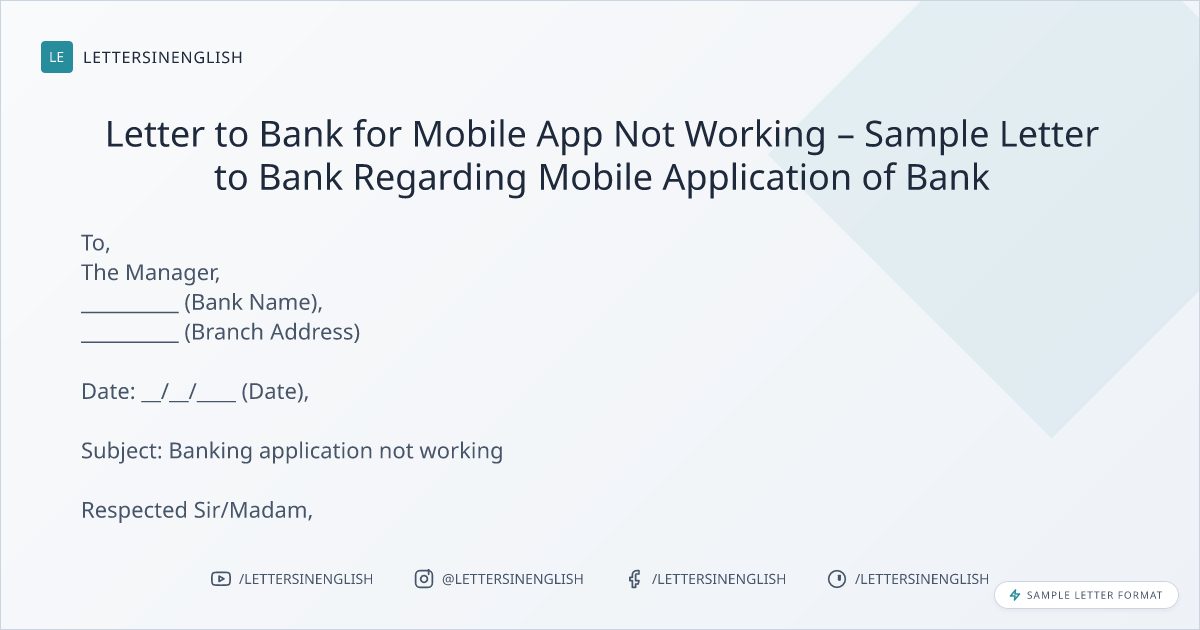 Letter to Bank for Mobile App Not Working – Sample Letter to Bank Regarding Mobile Application of Bank