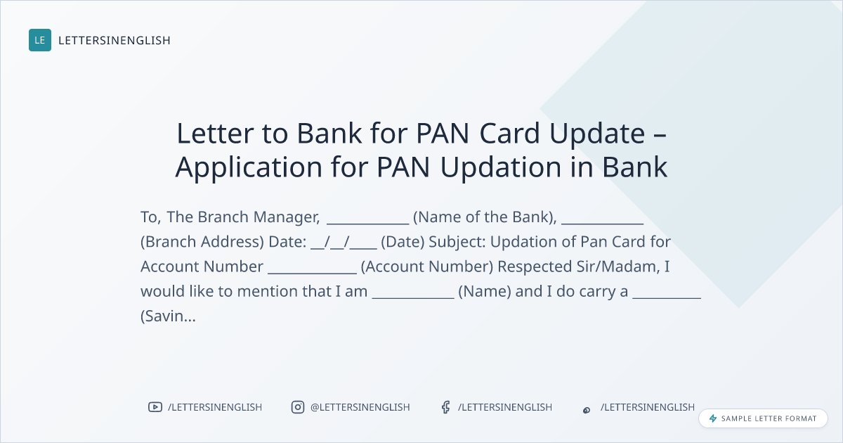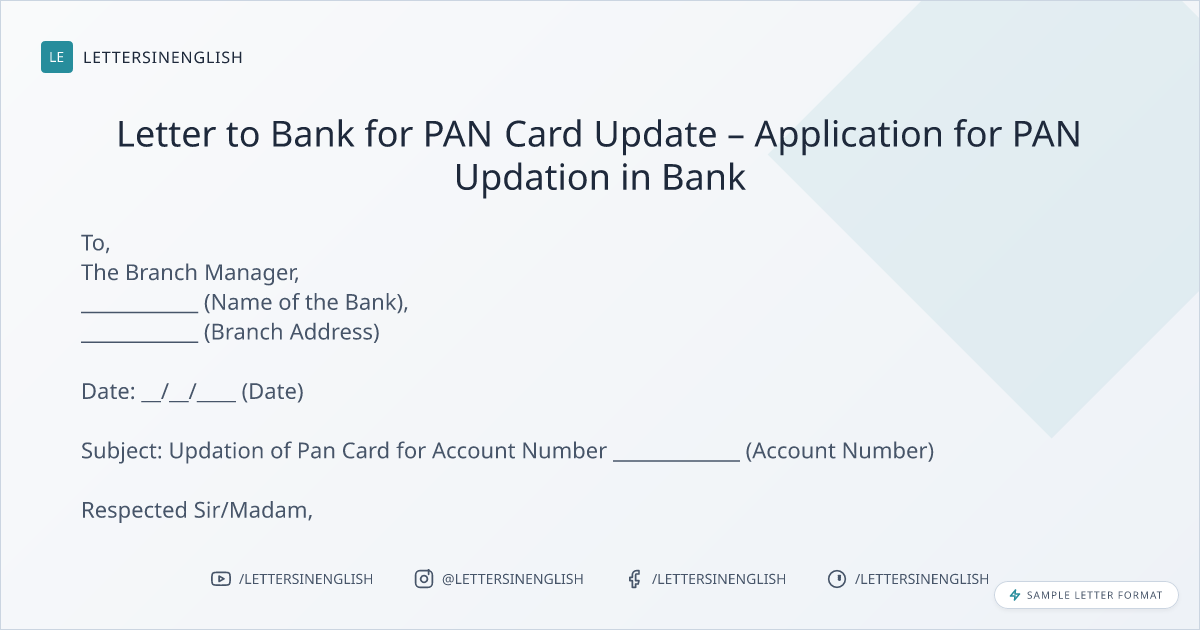 Letter to Bank for PAN Card Update – Application for PAN Updation in Bank