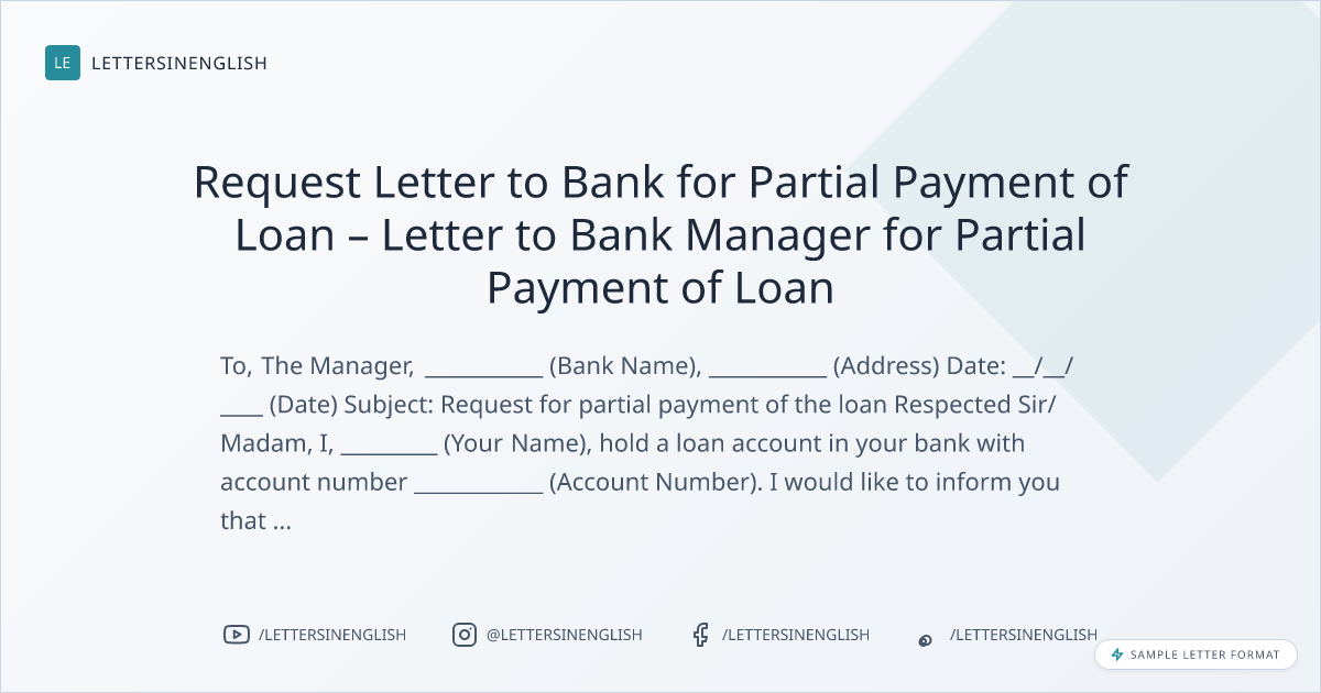 Request Letter to Bank for Partial Payment of Loan – Letter to Bank Manager for Partial Payment of Loan