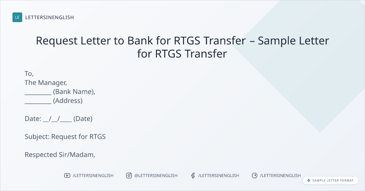 Request Letter to Bank for RTGS Transfer – Sample Letter for RTGS Transfer