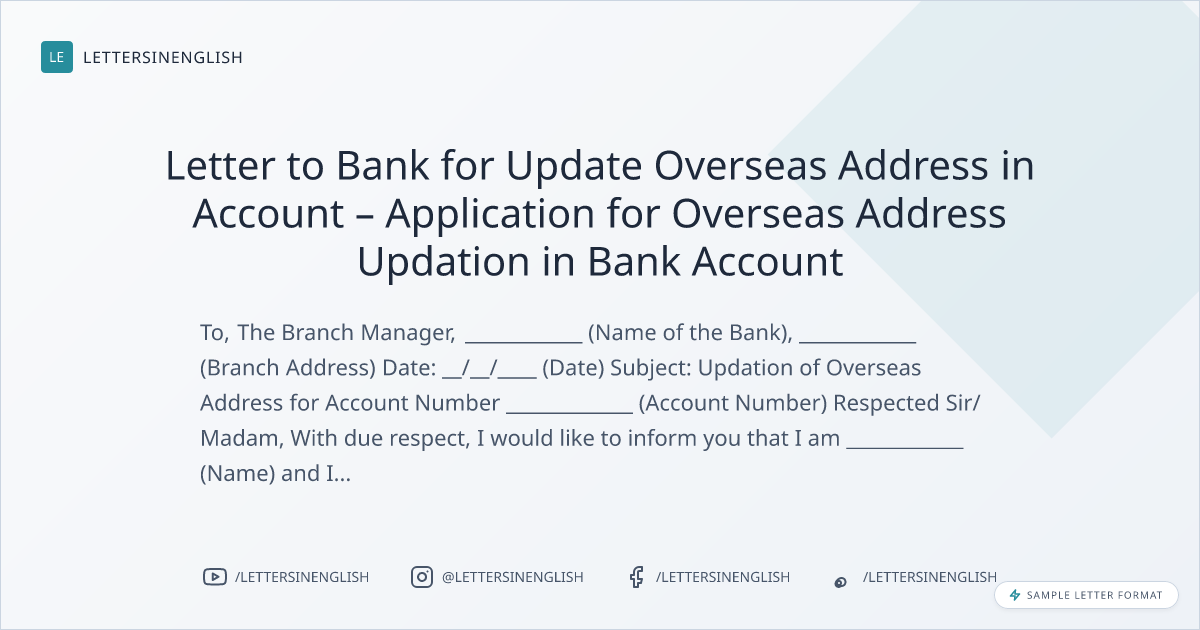 Request Letter to Update Overseas Address in Bank Account