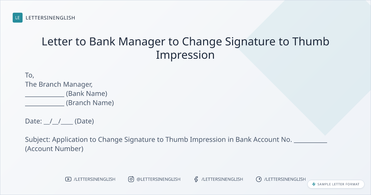 Letter to Bank Manager to Change Signature to Thumb Impression