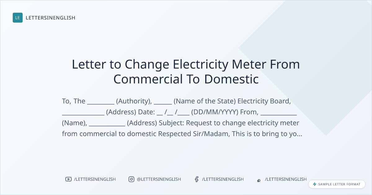 I want to bring in your concern that I want to change my electricity meter from commercial to domestic for the reason _______________ (Mention the reason/Had a business which took off/no more into business/others)