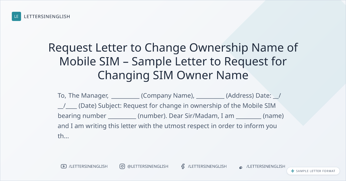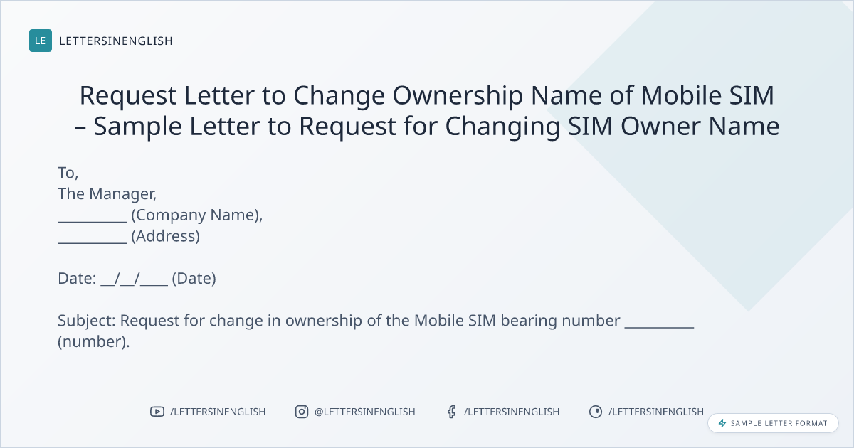 Request Letter to Change Ownership Name of Mobile SIM – Sample Letter to Request for Changing SIM Owner Name