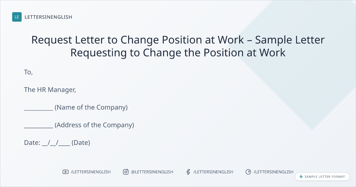 Request Letter to Change Position at Work – Sample Letter Requesting to Change the Position at Work