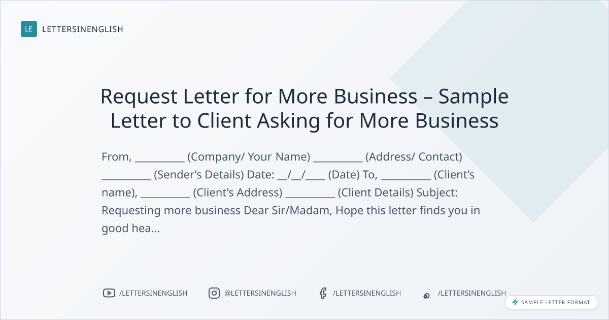 Request Letter for More Business – Sample Letter to Client Asking for More Business