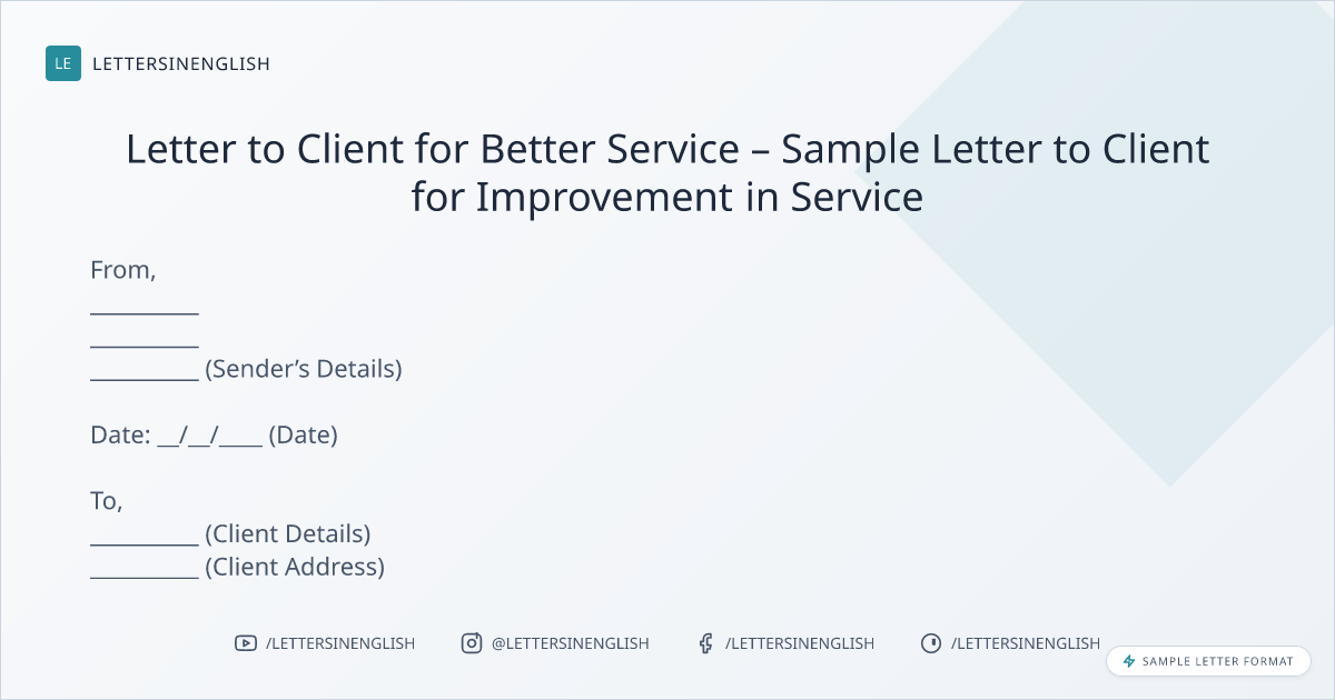 Letter to Client for Better Service – Sample Letter to Client for Improvement in Service