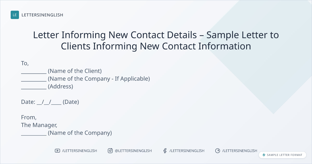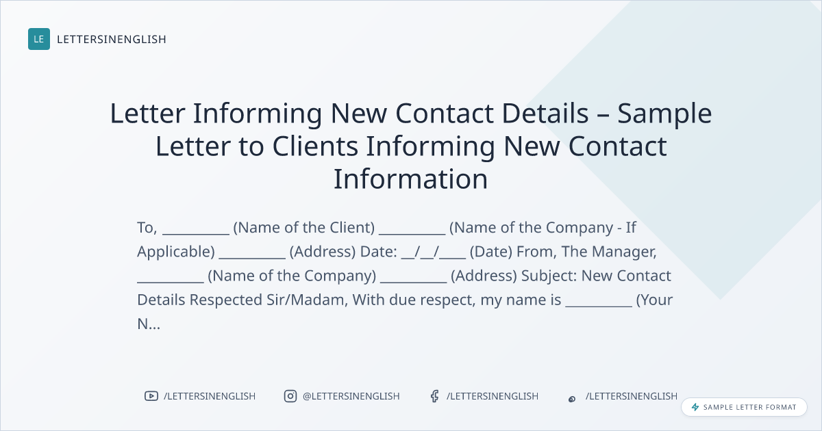 Letter Informing New Contact Details – Sample Letter to Clients Informing New Contact Information
