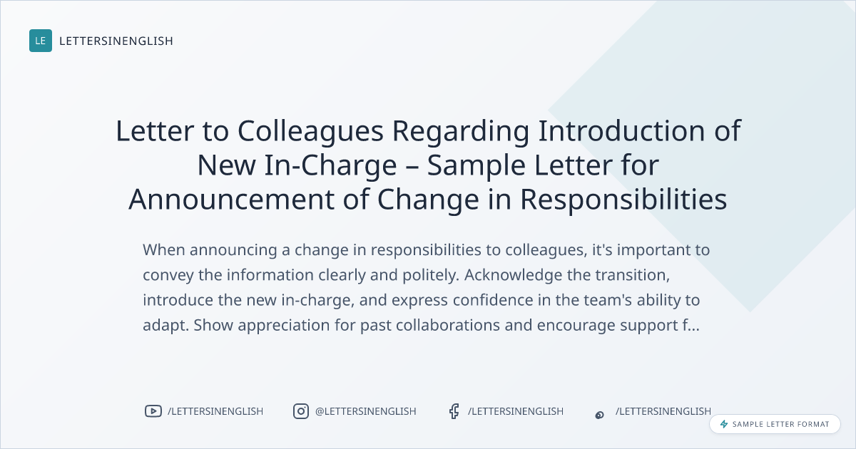 Letter to Colleagues Regarding Introduction of New In-Charge – Sample Letter for Announcement of Change in Responsibilities