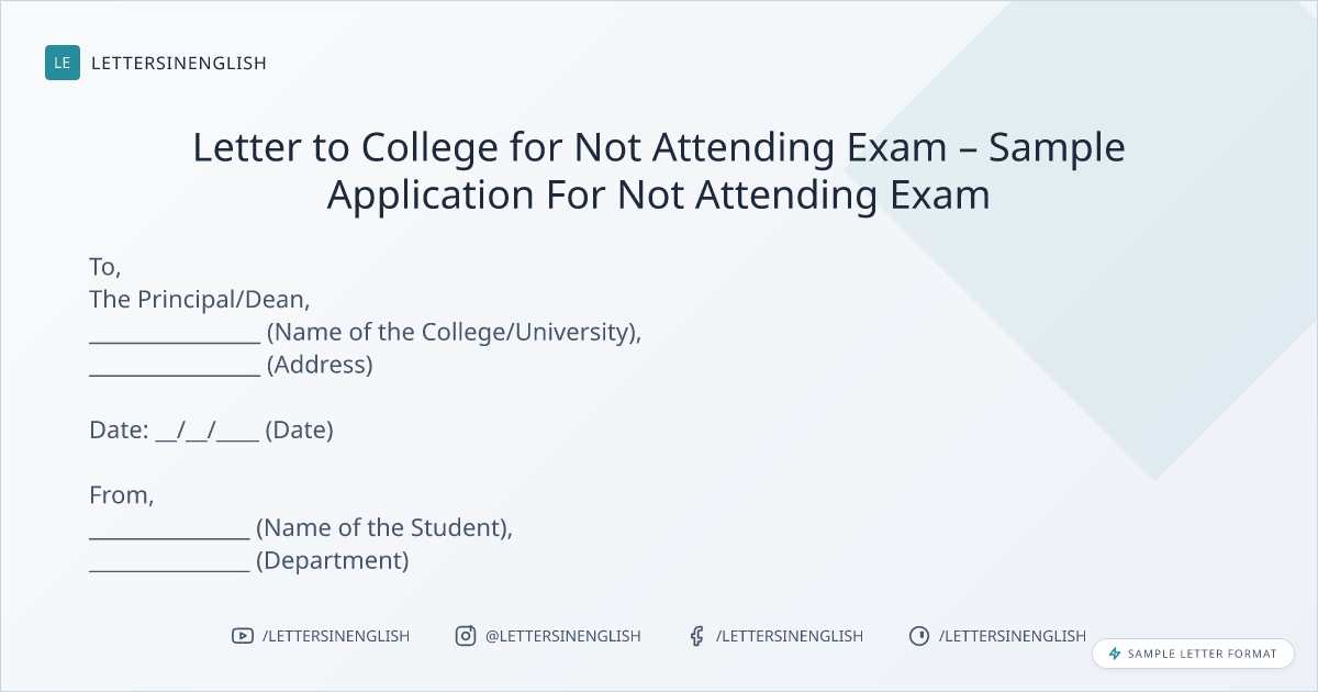 Letter to College for Not Attending Exam – Sample Application For Not Attending Exam