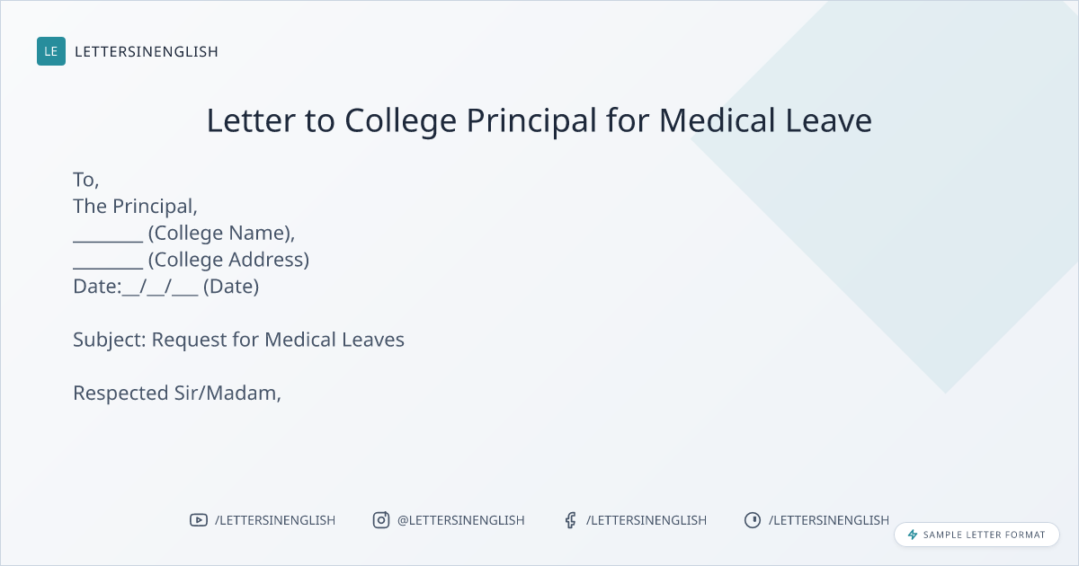 Letter to College Principal for Medical Leave