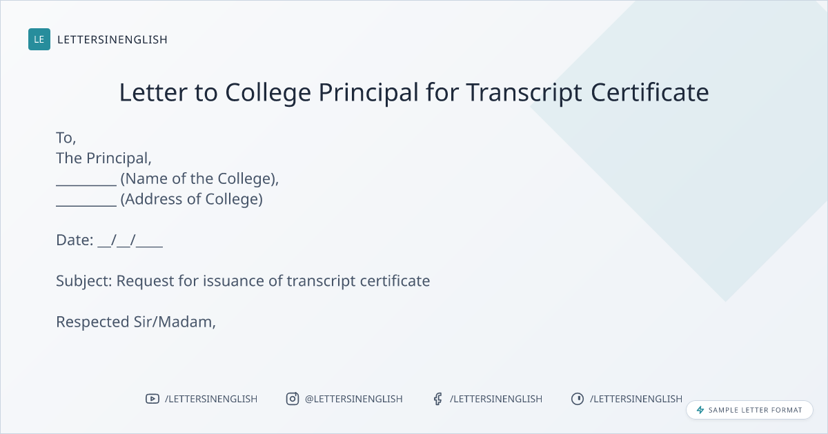 Request Letter for Transcript Certificate to College Principal