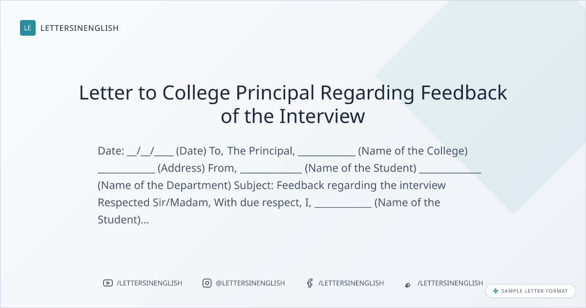 Sample Letter to Principal for Feedback of the Interview