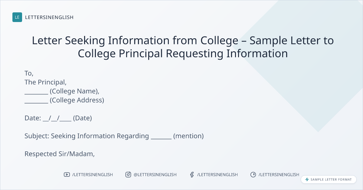 Letter Seeking Information from College – Sample Letter to College Principal Requesting Information