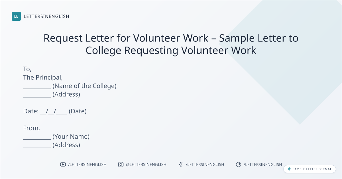 Request Letter for Volunteer Work – Sample Letter to College Requesting Volunteer Work