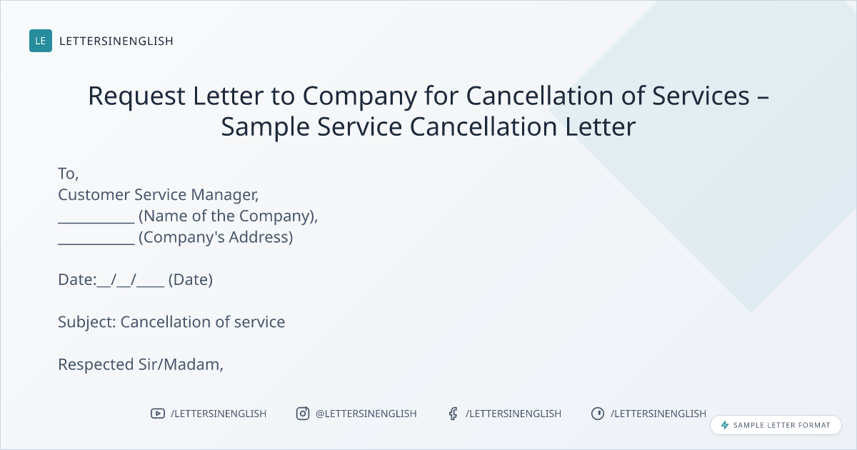 Request Letter to Company for Cancellation of Services – Sample Service Cancellation Letter