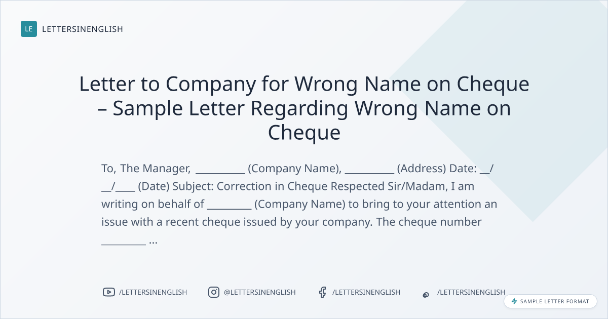 Sample Letter Regarding Wrong Name on Cheque
