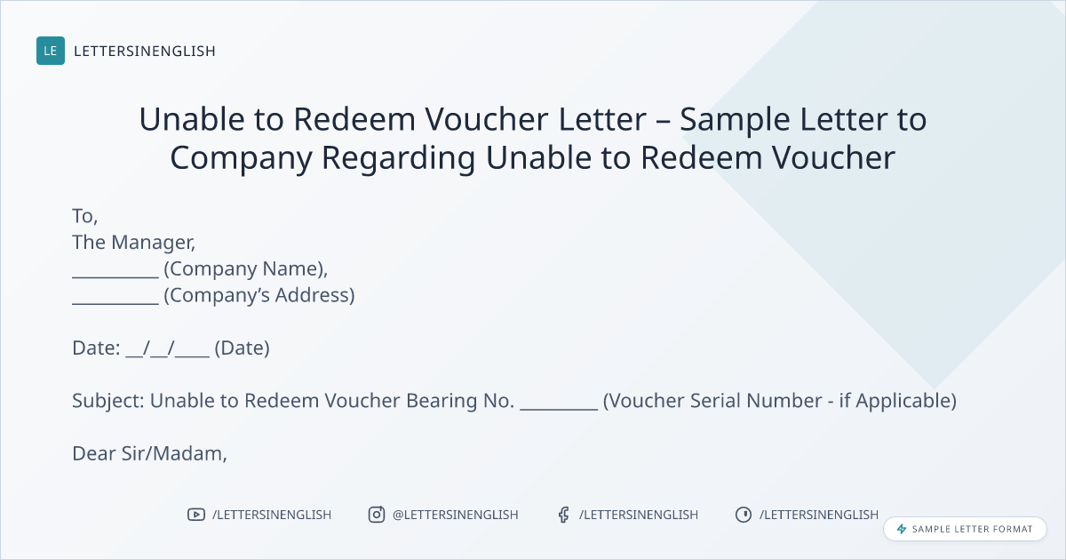 Unable to Redeem Voucher Letter – Sample Letter to Company Regarding Unable to Redeem Voucher