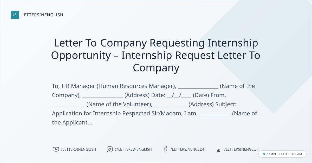 Letter To Company Requesting Internship Opportunity – Internship Request Letter To Company