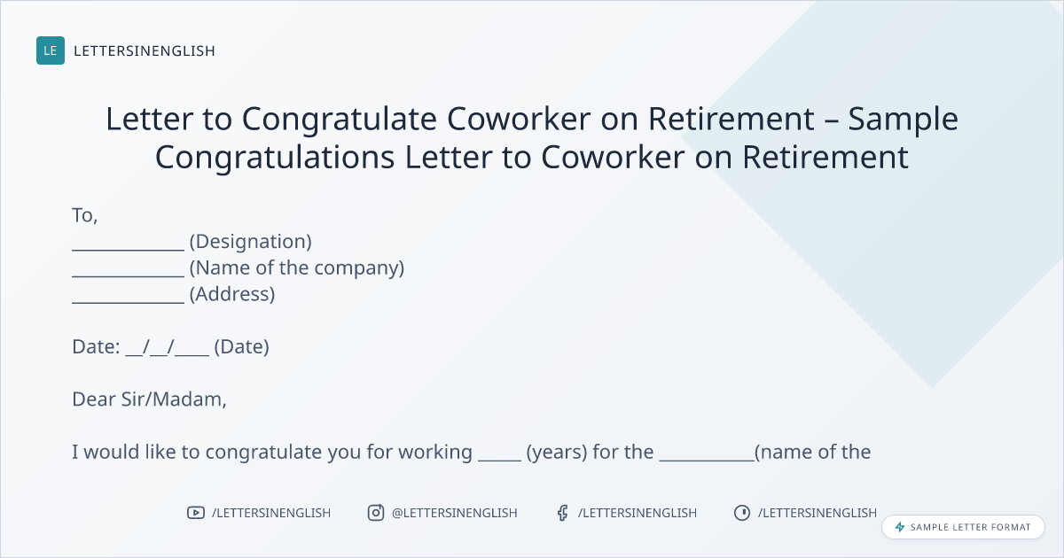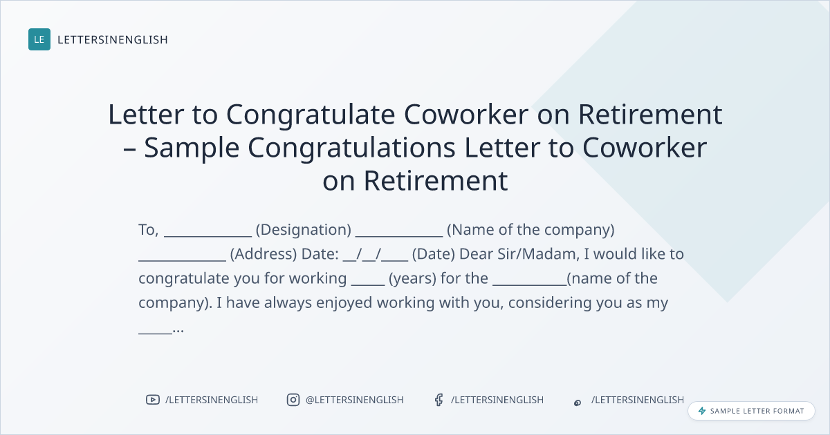 Letter to Congratulate Coworker on Retirement – Sample Congratulations Letter to Coworker on Retirement