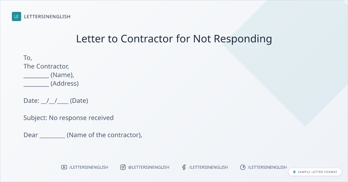 Sample Letter to Contractor for Not Responding