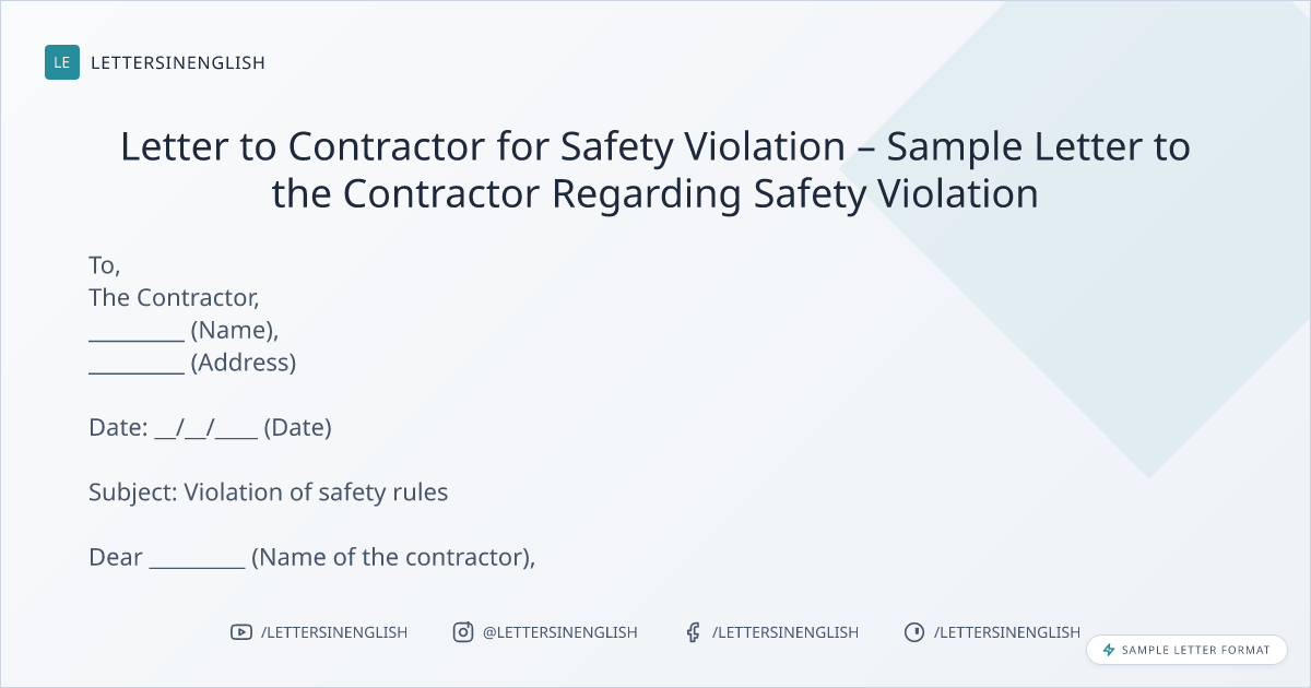 Letter to Contractor for Safety Violation – Sample Letter to the Contractor Regarding Safety Violation