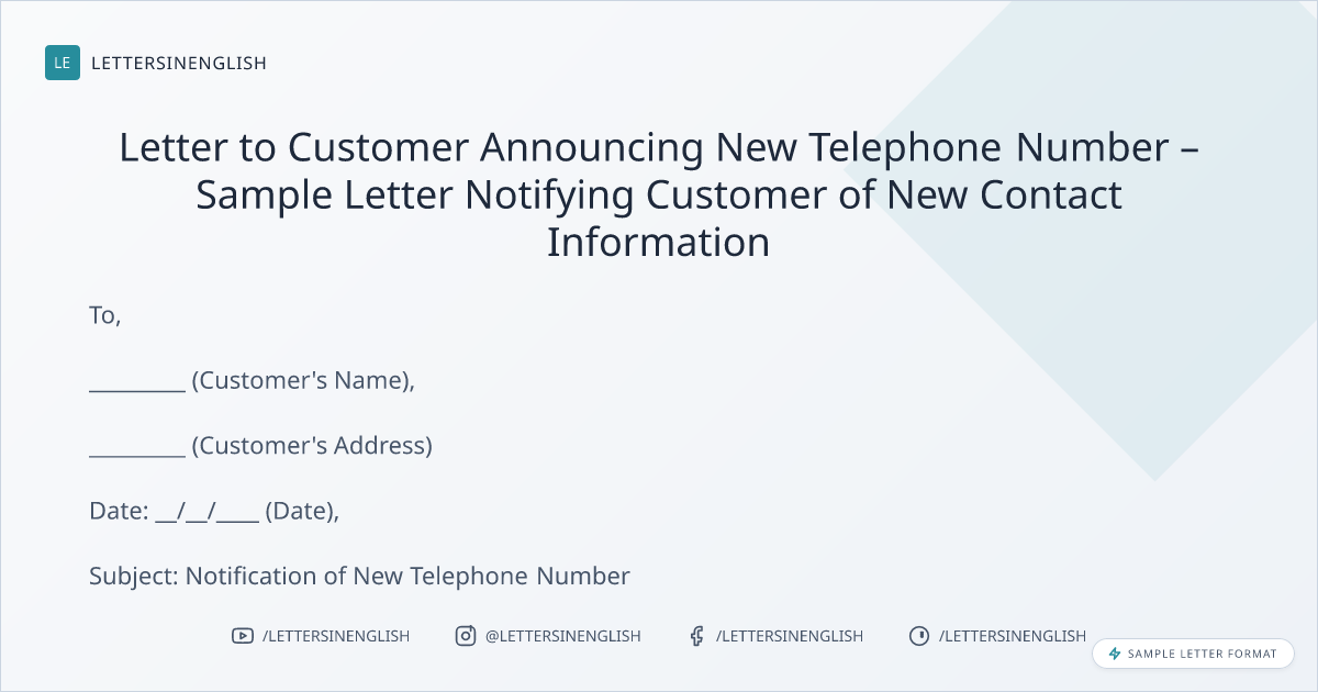 Letter to Customer Announcing New Telephone Number – Sample Letter Notifying Customer of New Contact Information