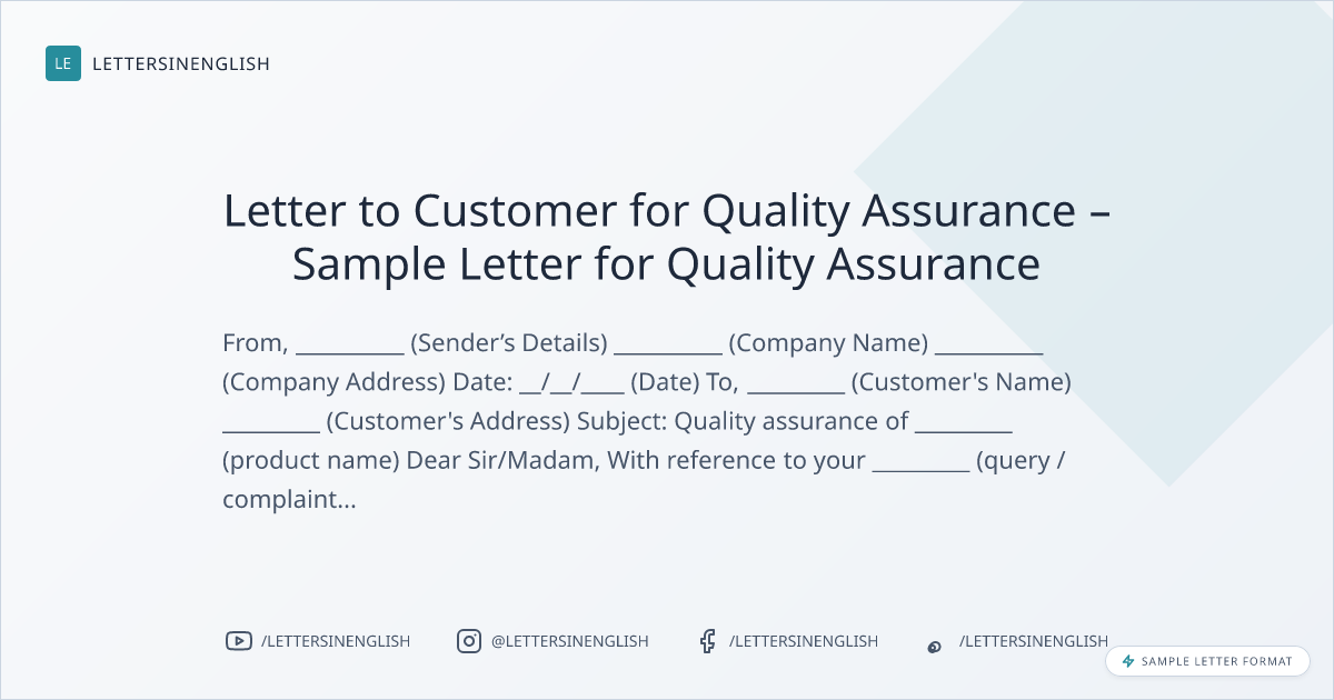 Letter to Customer for Quality Assurance – Sample Letter for Quality Assurance