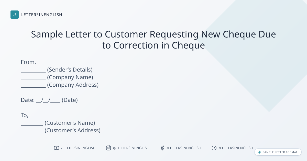 Sample Letter to Customer Requesting New Cheque Due to Correction in Cheque