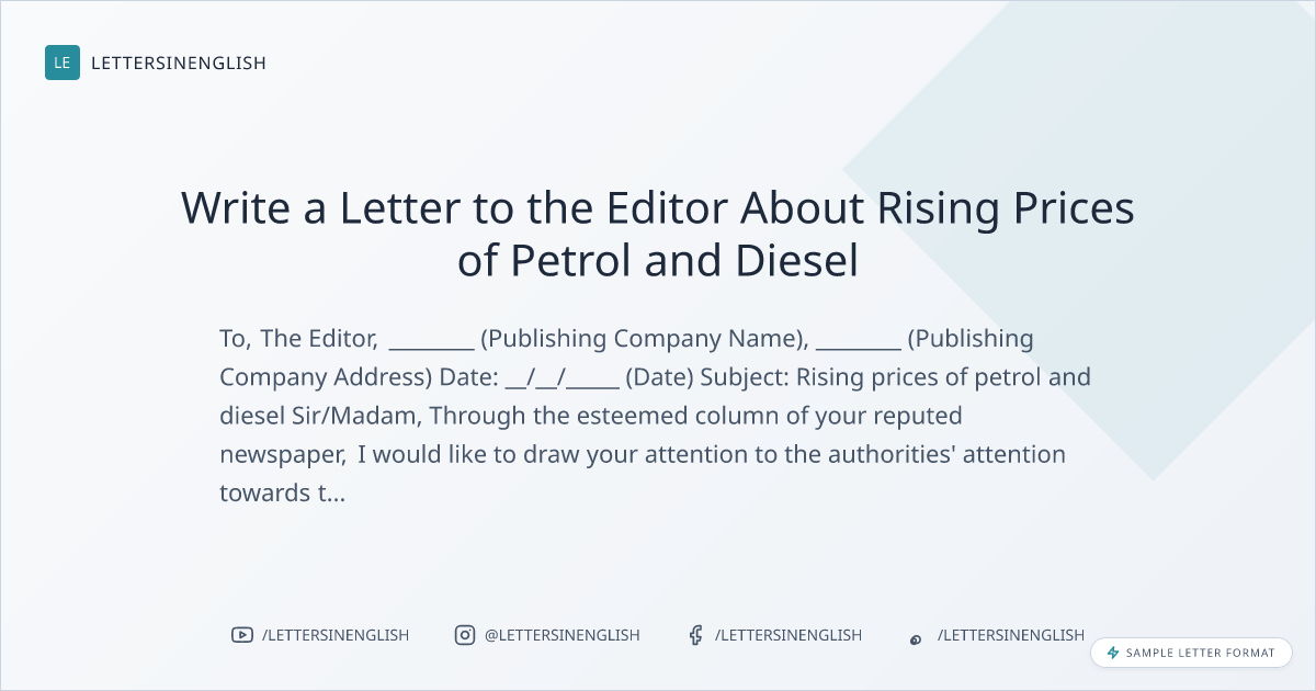 Write a Letter to the Editor About Rising Prices of Petrol and Diesel
