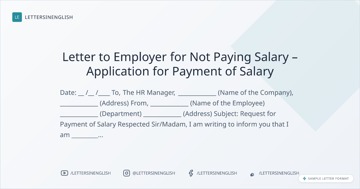 Letter to Employer for Not Paying Salary – Application for Payment of Salary