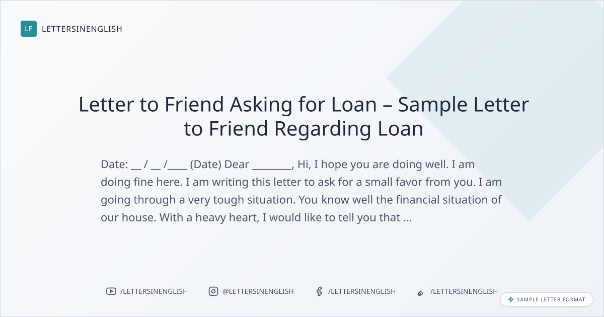 Letter to Friend Asking for Loan – Sample Letter to Friend Regarding Loan